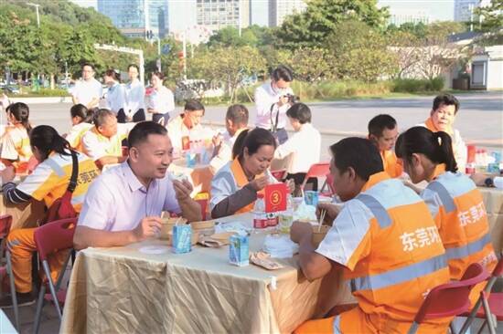 东莞市城管局领导与环卫工人共进早餐