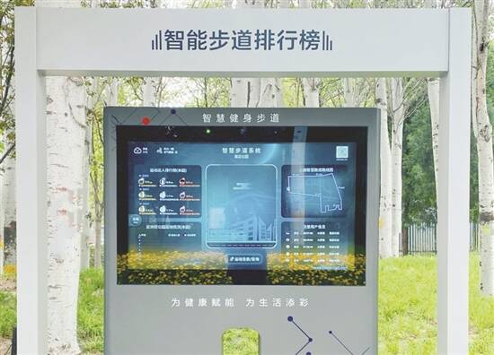 在江苏省南通市植物园的智慧步道,健身者可通过APP、小程序或人脸识别等方式登录智能步道系统,不仅获得科学的健身计划,还可以随时了解到健走里程、速度和卡路里消耗情况,接受实时的科学健身指导。步道以数据化、可视化的形式,让健身锻炼变得更加科学、合理、方便、贴心。步道的多功能“健康柱”可检测使用者心率、体温和呼吸,并且设定应急按键,点击按键后将自动连接后台管理方,管理方可迅速获得意外状况位置,通过远程视频通话及时提供救助。步道的智能互动大屏不仅能及时呈现步道运动者的运动信息及步道健走群的排名情况,还能播放健身常识、信息发布等内容。