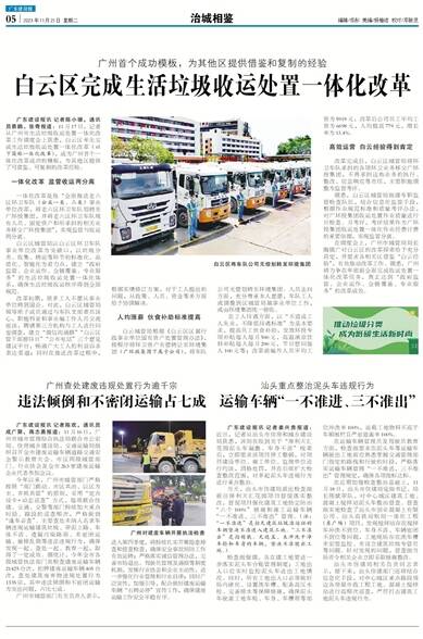 广东建设报讯 记者陈小珊,通讯员易鹏、张奇报道:11月17日,记者从广州市生活垃圾收运处置一体化改革工作调度会上获悉,白云区率先完成生活垃圾收运处置一体化改革(以下简称一体化改革),成为广州首个一体化改革成功的模板,为其他区提供了可借鉴、可复制的改革经验。