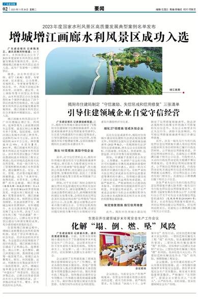 广东建设报讯 记者陈克正、通讯员穗河轩报道:11月22日,水利部景区办公布了2023年度国家水利风景区高质量发展典型案例名单。其中,增城增江画廊水利风景区成功入选,成为广东省唯一上榜的景区。