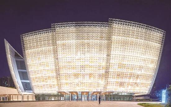该项目是全球首个五个立面均采用光伏技术的公共建筑,新型光伏发电技术、空调区域供冷技术、电气照明节能技术、海绵城市及雨水回用技术四大绿色建筑技术的运用,让艺术与科技实现了完美的融合。