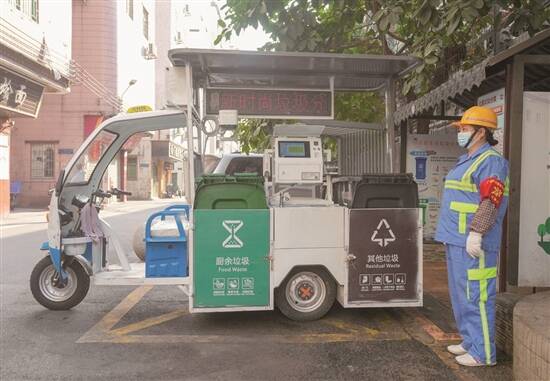 同时,公共空间狭小、难以寻觅位置设置分类投放点,是广州不少城中村的“通病”。对此,江夏社区探索了一款垃圾收运车,该车除了可容纳多个分类垃圾桶,还配有洗手设施等设备,便民使用。凭借该车,收运业务得以延伸至空间狭小不便长期设置投放点的城中村窄巷。