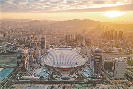 作为全国首个在铁路正上方上盖开发的站房,广州白云站积极探索土地集约高效利用。为实现站房雨棚正上方物业开发,中铁建工集团项目团队采用了立体“造地”技术。“造地”面积约为6.8万平方米,是由276根直径1.65米的钢管混凝土柱支撑起的重达28万吨的上盖盖板。