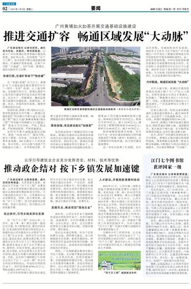 广东建设报讯 记者刘丽莎,通讯员冯冬枚、洪植丹、程伟团报道:记者从广州市黄埔区住房和城乡建设局获悉,2023年以来,该局聚焦“百千万工程”,如火如荼开展交通基础设施建设,打通城乡要素流通、区域产业对接“大通道”,为扩内需、稳增长、惠民生提供有力支撑。