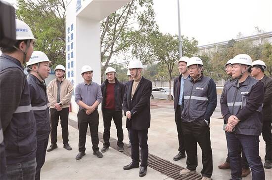 东莞市住房和城乡建设局党组书记、局长谢卫东(前排右三)现场督导检查 (东莞市住房和城乡建设局供图)