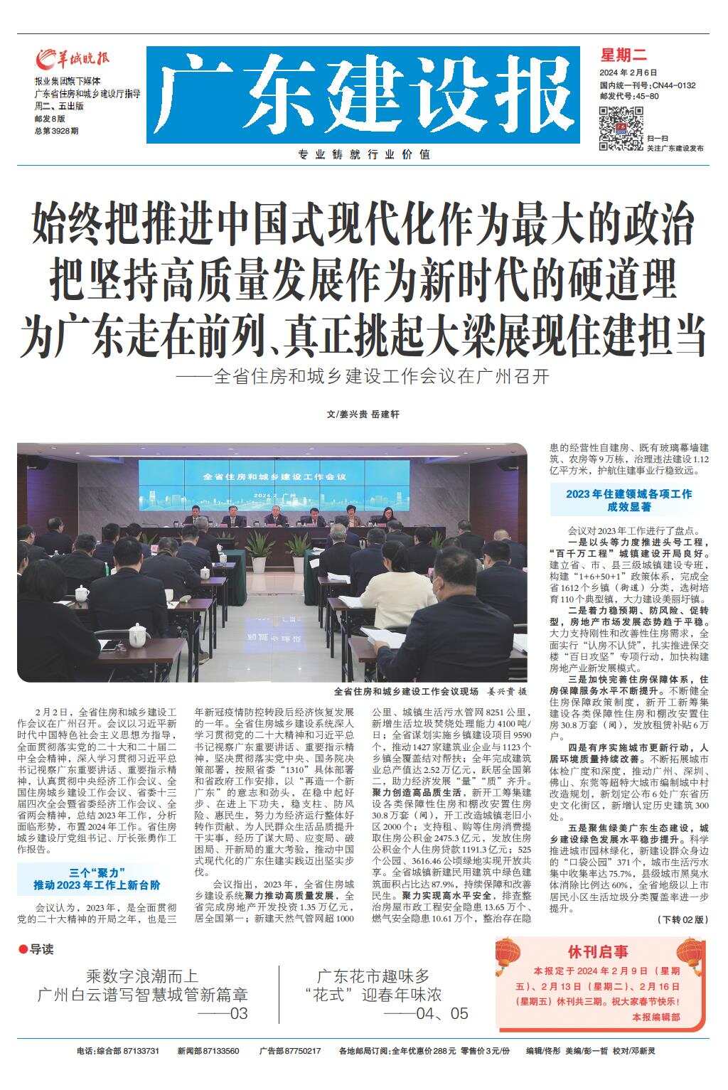 始终把推进中国式现代化作为最大的政治 把坚持高质量发展作为新时代的硬道理 为广东走在前列、真正挑起大梁展现住建担当