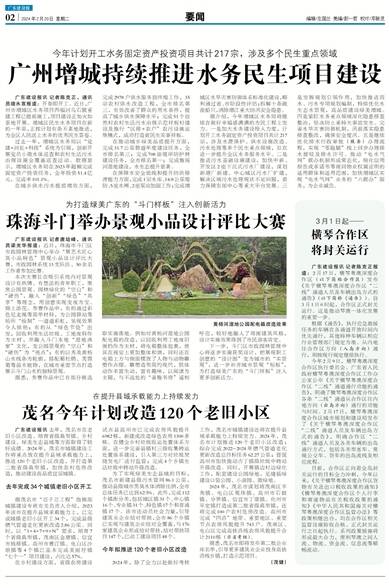 2024年,除了全力以赴做好考核工作,茂名市城镇建设还将在提升县域承载能力上持续发力。2024年,茂名市计划推进120个老旧小区改造;综合完成2022-2024年燃气管道老化更新改造总目标任务62.27公里;督促高州市加快推动古丁镇级垃圾中转站升级改造。同时,开展镇边村边绿化工作,配套建设公园绿地,见缝插绿建设口袋公园、小游园、微绿地。