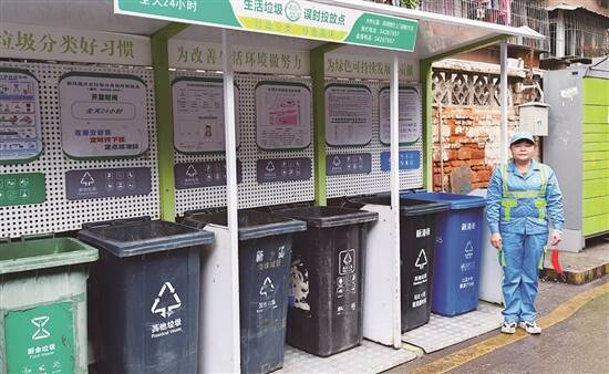 所谓“守桶”,即每天早上7点,在完成路面打扫工作后,前往指定的生活垃圾分类投放点,指导居民进行垃圾分类投放。吕丽琼告诉记者,在最开始推行垃圾分类的时候比较困难,总会遇到不理解、不配合的居民,有时还可能遇到乱扔乱倒大件垃圾、过时投放导致垃圾落地等情况。对此,吕丽琼时常要反复多次、耐心细心地劝说和指导居民按类投放生活垃圾。另外,她还要每周清洗垃圾分类亭,保持环境卫生整洁。