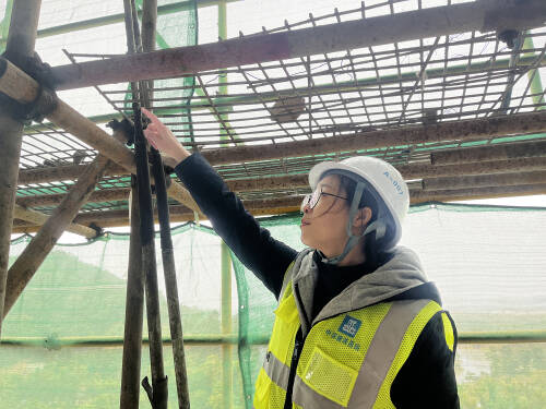在项目施工现场,廖燕练就了一双“火眼金睛”,盯紧各个危大工程的施工细节。个子小小的廖燕,穿梭于钢筋水泥之间,躬身、眺望、测量、拍照,检查每一处细节。支撑架之间的间距通常不到1米,纤小的廖燕反而具有身形优势,在架子林立的间隙里上下“蹿”,隐秘的角落、关键的部位都逃不过她的细致观察。