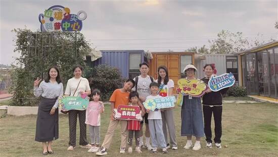 亲子家庭在垃圾分类科普中心合影