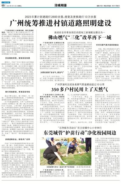 各区也作出积极探索。番禺区城管局将“有路无灯”整治工作纳入2023年度十件民生实事之一,推动石碁镇前锋村前锋南路安装路灯120盏,保障村民夜间出行安全。白云区住建局通过全面摸查,推动分类整治和升级改造,新建路灯1300余盏,修复及更换路灯6000余盏,敷设和更换电缆线路约12万米,改善了“城中村”等村镇道路夜间出行环境。