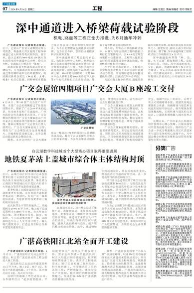 深中通道是世界级“桥、岛、隧、水下互通”跨海集群工程,全长约24公里。目前,深中通道的机电、交安、路面、房建附属等工程正在全力推进,为6月具备通车条件而冲刺。项目建成通车后,深圳至中山的车程将从目前的约2小时缩短至30分钟内。