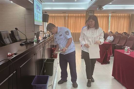 活动中,讲师对《广州市生活垃圾分类管理条例》进行了普法解读,讲解了广州市教育局关于全市学校参与城市“无废细胞”建设有关事项的通知及《广州市深化生活垃圾分类处理三年行动计划(2023-2025年)》关于教育系统的要求,明确了生活垃圾分类的考核标准及工作要点。此外,讲师结合案例介绍了学校责任人应如何做好生活垃圾分类工作,现场还进行了业务内容实操、互动问答和课堂检测,进一步激发了参与者的兴趣。