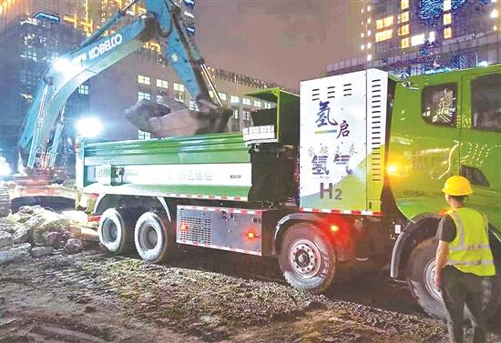 氢燃料电池自卸车在白云艺术广场建设项目进行渣土清运 (通讯员供图)