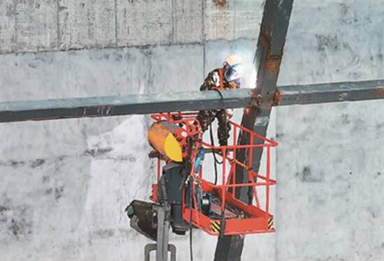 工人在焊接广西玉林北站站房的钢梁 新华社记者 张爱林 摄