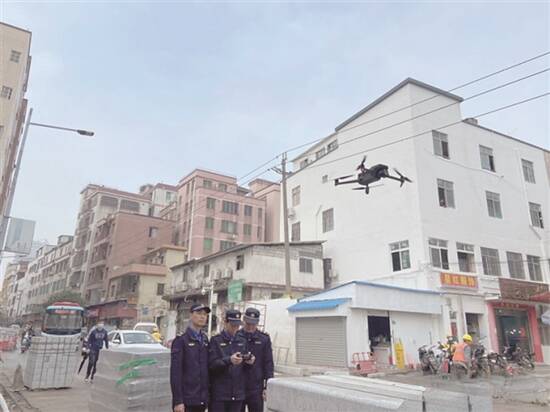 伴随着一阵嗡鸣声,无人机腾空飞起,开始了日常的低空巡查工作。有无铁棚违建、建筑外立面情况……在地面接收器的屏幕上,显示出无线传输的实时图像,太和镇广州民营科技园、白云湖数字科技城、白云新城商圈、设计之都等范围内的情况尽收眼底。