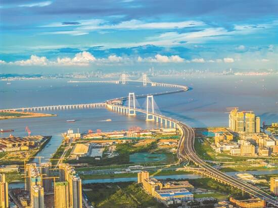 此外,深中通道项目应用一系列方案和智能技术,克服了“大跨度新型钢壳混凝土结构设计及施工、复杂地质条件下管节基础处理、长距离管节浮运沉放、东岛地下互通立交及沿江高速桥墩保护”等一系列世界级难题挑战。