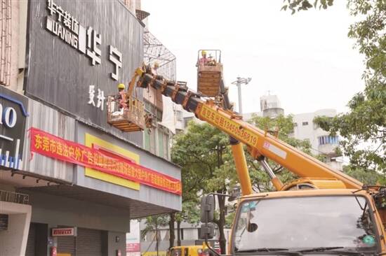 据介绍,在东莞市城管局统筹下,万江、虎门、大岭山、大朗、塘厦、厚街、长安、企石、樟木头、东城等镇街也于近日同步开展违法户外广告设施拆除行动,共整治违法户外广告设施20处,面积约3000平方米。