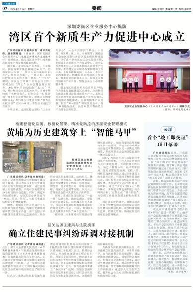 广东建设报讯 记者姜兴贵,通讯员赵微、唐永国报道:7月11日,深圳龙岗区企业服务中心(龙岗区新质生产力促进中心)揭牌成立,成为湾区首个专门统筹推进新质生产力发展的政府机构。