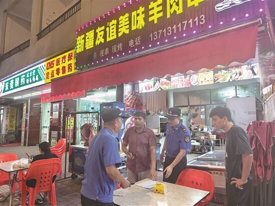 石龙城管沿街检查广告牌(石龙城管分局供图)