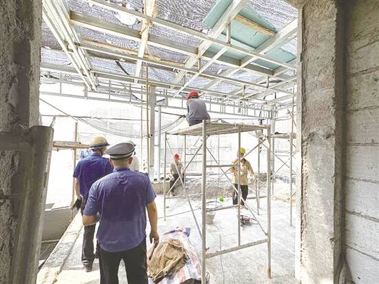 前段时间,城管执法人员在巡查中发现,绿岛湖阳光半岛小区部分别墅存在涉嫌未经许可擅自加建的情况。执法人员迅速约谈违建当事人,在查清事实后开具相关法律文书,并要求当事人自行整改。限期整改期间,当事人非但没有停工,反而继续加建抢建。执法人员多次联同社区及物业工作人员上门劝导,宣讲相关法律法规及违法建设的危害,当事人置若罔闻,在执法人员离开后,又重新施工。