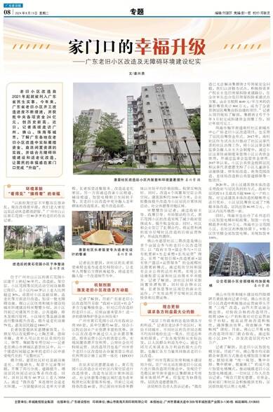 老旧小区改造自2021年起就被列入广东省民生实事。今年来,广东省老旧小区开工改造进度不断提速,并获批中央各项资金24亿元,创历史新高。近日,记者连续走访广州、佛山、珠海等城市,了解广东各地在老旧小区改造中实际筹措资金、盘活闲置资源的实践,并结合无障碍环境建设和适老化改造,让居民的幸福感在家门口完成“升级”。