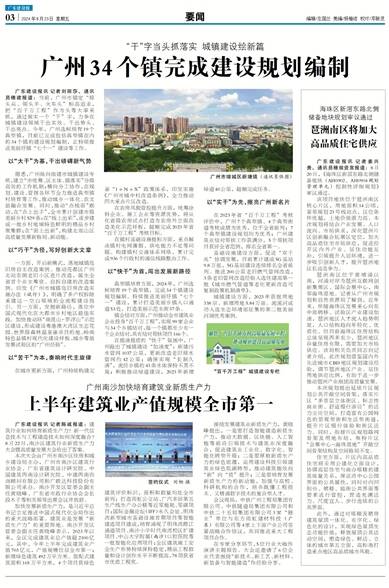加快发展新质生产力,是习近平总书记立足推进中国式现代化全局作出的重大战略部署。建筑业是发展“新质生产力”的重要阵地。南沙开发区管委会副主任黄晓峰表示,2023年以来,全区完成建筑业总产值超2100亿元,其中,今年上半年完成建筑业产值703亿元,产值规模位居全市第一;新增绿色建筑492万平方米、装配式建筑面积165万平方米,4个项目获绿色建筑评价标识,面积和数量均处全市前列;打造雨虹公交站、广汽丰田第五生产线生产办公楼等近零能耗、零碳项目;国际金融论坛(IFF)永久会址、明珠湾新型城市基础设施首期项目等智能建造项目建成,培育涌现了明珠湾跨江通道项目、南沙小学时代南湾校区扩建项目、中山大学附属(南沙)口腔医院等一批智能化应用项目;全区建筑施工安全生产形势持续保持稳定,精品工程数量和设计创作水平不断提高,78项获省市优质工程奖。
