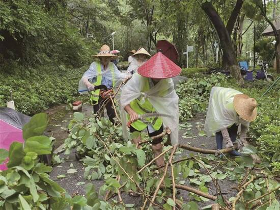 永泰乒乓体育公园工作人员清理倒伏树枝(白云区城管局供图)