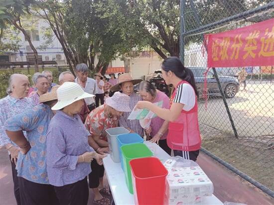 “奶奶好,这是我们南沙区的垃圾分类宣传折页,生活垃圾如果不知道扔哪个垃圾桶,看看这份折页就知道了。”一支支身穿红色马甲的垃圾分类志愿队伍穿街走巷、“入户入点”,发放分类宣传折页,传播分类知识,成为南沙区学习、宣传、践行垃圾分类的生动剪影。今年以来,南沙区综合施策,多点发力,全面盛开“环保花”,吹响无废小区“集结号”,生活垃圾分类知晓率、居民满意度逐步提升。