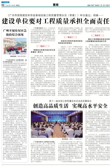 广东建设报讯 记者陈克正报道:11月1日至3日,第十一届全国工程质量学术交流会在广州举办。大会以“数字住建时代的检验检测新质生产力”为主题,聚焦建筑工程高质量发展、数字化转型、新质生产力培育、房屋安全管理“三项制度”、智能实验室建设和文物建筑系统性保护等热点问题,60多位行业知名专家分享了最新研究成果、前沿技术和实践经验,并对发展中的问题及未来的方向进行了交流研讨。