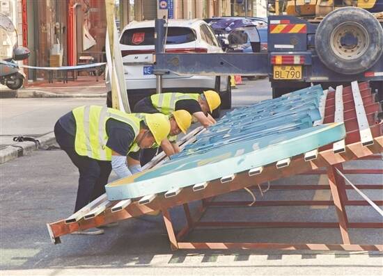 存在安全隐患的户外广告牌安全落地(广州市城管局供图)