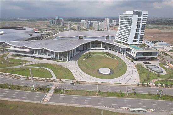 汕头国际会展中心项目建筑总高度为36.3米,总用地面积8.7万平方米,总建筑面积约15.37万平方米。外观上,以“潮起逐浪、扬帆起航”为主题,整座建筑如舟,屋顶景观似潮,中交四航局建设团队把设计蓝图化成实物,彰显出潮汕传统文化、港湾文化和“侨”文化特色,彰显潮汕韵味和特区魅力。