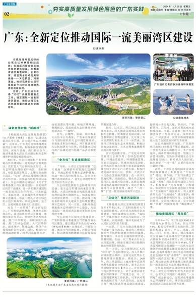 目前,广东正结合省委“1310”具体部署重点工作,锚定国际一流美丽湾区目标,推动大湾区生态环境质量持续走在全国前列。