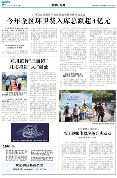 广东建设报讯 记者陈小珊,通讯员全碧芳、谢辉、余汶霏报道:近日,记者从广州市白云区城市管理和综合执法局获悉,在白云智慧环卫收费系统的加持下,今年以来,白云区环卫费入库总额达4.06亿元,与改革前相比,缴费总额翻一番,增量和总量都位居广州市各区第一名。