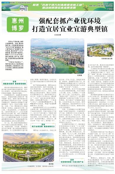 罗浮山下四时春,博罗大地展新韵。当前,惠州市博罗县,正紧紧围绕推动“百千万工程”城镇建设“施工图”转化为“实景图”的工作目标,重点抓好“1+6+2”典型镇、重点提升镇建设,聚焦“1+4+7+9+N”任务,通过强配套、抓产业、优环境,打造宜居宜业宜游的典型镇。