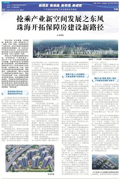 珠海市部署建设的产业新空间正合时宜。为此,珠海市住房和城乡建设局开始着力聚焦园区企业需求实际,加速在产业园区配套建设保障性住房,精准保障产业工人住房需求。