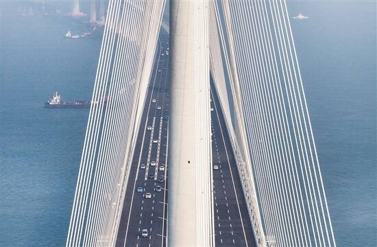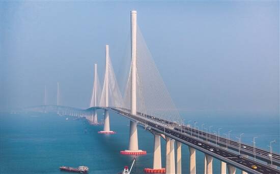 黄茅海跨海通道主塔被誉为海上“小蛮腰”(本版图片来源:新华社)