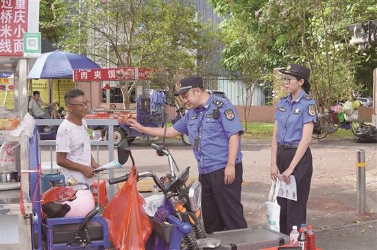 执法不仅要规范有序,更要注入温度与关怀。松山湖城管分局制定了《行政执法人员依法履职管理制度》《执法队伍行为规范》《执法人员文明用语规范》等制度,为柔性执法提供“场景用语”。一句“您好,我们是松山湖城管分局执法人员,请看证件”,展现了城管主动亮明身份、规范执法的态度;一句“对不起,耽误您的时间了,再见”,展示的是城管执法的真诚;一句“请您先别急,有什么事慢慢说”,带给当事人的则是工作的柔情和温暖。