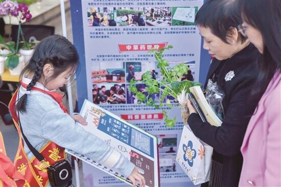 “大家看这里,这些植物不长在地上,而是住在树上,他们不需要土壤就可以生长,是典型的租房一族,站在巨人肩膀上看世界……”在方圆小学生态科普宣教点的附生植物科普区,小小宣讲员为前来观看的民众开展科普讲解。此外,方圆小学生态科普宣教点还设置了丰富的展览区和互动体验内容,使参与者能够直观地了解人与自然如何和谐共处、城市与园林如何相互促进的美好图景。