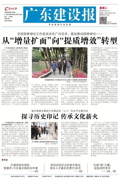 广东建设报讯 记者陈克正报道:3月7日,全国园林绿化工作座谈会在广州云溪植物园自然教育馆召开。本次会议由住房和城乡建设部城市建设司主办。住房和城乡建设部城市建设司副司长王凯峰,广东省住房和城乡建设厅党组成员、副厅长刘耿辉,广州市政府副秘书长谢伟光,中国风景园林学会理事长李如生等领导出席座谈会并讲话。来自全国各省级园林绿化主管部门处室、行业学会协会、广州市园林绿化行业主管部门等相关代表共80余人参加会议,共商新时代园林绿化高质量发展路径。
