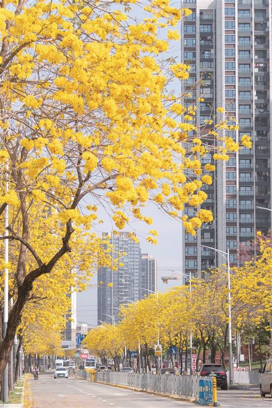 深圳龙岗区龙凤路黄花风铃木(深圳市城管局供图)