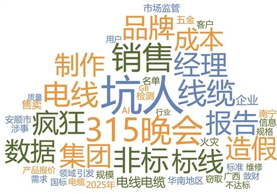 2025年央视“3·15”晚会涉及电线电缆话题词云图 (制图:朱卓城)
