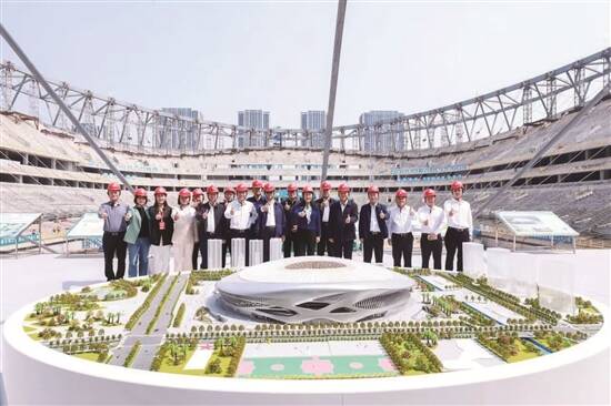 当天,与会人员还共同观摩了广州足球公园球场项目,该项目将打造全国容量最大的足球场。