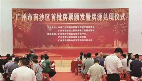 广州市规划和自然资源局南沙区分局、南沙区住房和城乡建设局、南沙区土地开发中心、珠江街道、工商银行南沙分行等单位领导出席仪式,并为18户首批获得房票资格的居民颁发房票凭证。