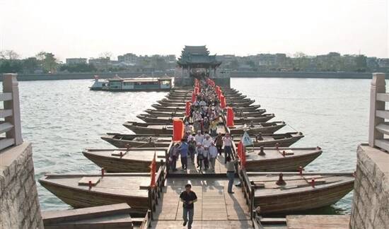 始建于南宋的潮州广济桥,其“十八梭船廿四洲”堪称古代桥梁的“变形金刚”。作为启闭式桥梁,广济桥中间的浮桥由18艘木船连接而成,可根据需要开启或闭合,闭合时方便行人过江,开启时能让大型船舶通行。