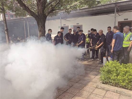 同时,按照防蚊灭蚊统一行动方案,该局在每日伊蚊活动高峰期(早上7时-9时、下午17时-19时)开展全域消杀,已完成中转站、公园广场、背街小巷、绿化带等15万平方米区域的蚊虫灭杀。值得一提的是,为提升消杀专业性,该局专门邀请专家,为来自中转站、公园的60名环卫绿化工人开展现场教学,重点讲解消杀技术与个人防护实操要点,助力一线人员快速掌握要领。