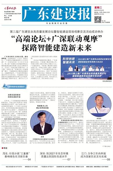 广东建设报讯 记者赵文霞、唐培峰报道:在国家谋划“十五五”规划之际,广东建筑业智能建造技术上有何突破?下一步该如何走?8月21日至22日,第三届广东建筑业高质量发展论坛暨智能建造现场观摩交流活动顺利举办。活动以“科技创新 智建未来”为主题,创新打造“高端论坛+双城观摩”模式。羊城晚报报业集团党委副书记、总编辑林海利,广东省住房和城乡建设厅有关负责同志,中国建筑业协会副秘书长赵峰等领导出席会议并致辞。国家卓越工程师叶浩文、清华大学土木工程系教授马智亮等专家学者作主题演讲。
