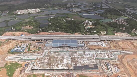 广湛高铁阳江北站智能交通枢纽主体封顶(通讯员供图)