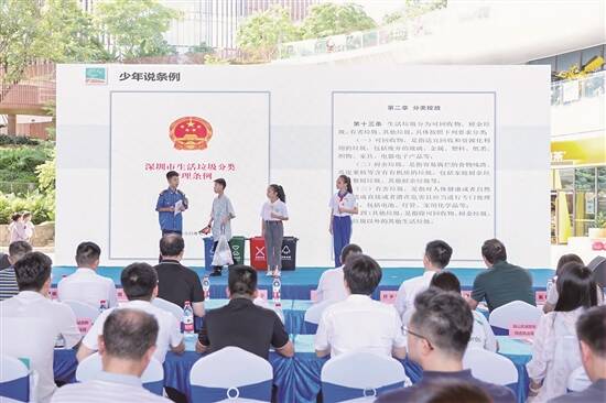 在当天的活动现场,学生代表带来了“少年说条例”情景剧,活泼的演绎赢得现场阵阵掌声。同时,福田、宝安、龙岗三区分别围绕“智能回收”“社区治理”“志愿服务”三大主题,展示了各具特色的分类实践,从福田区全面构建科技赋能的智能回收体系,到宝安区深入基层的社区治理实践,再到龙岗区全民参与的志愿服务力量,不同维度的分类实践为深圳垃圾分类工作注入了新的活力。