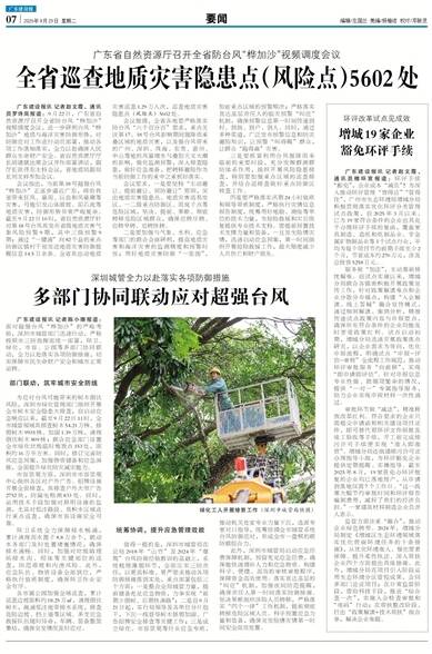 市容景观方面,深圳市市容景观中心组织各区对户外广告、招牌设施开展全面排查,共排查户外大型广告2752块,防漏电检测833处。同时,运用技术手段加强对照明设施的监测,尤其对低洼路段、易积水区域进行重点巡查,确保市容设施安全可靠。